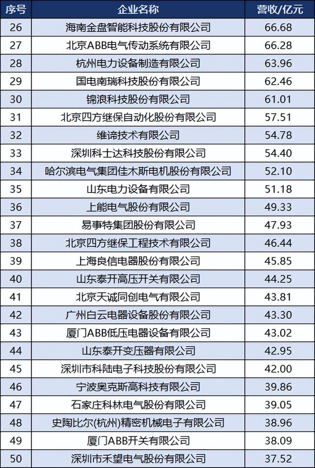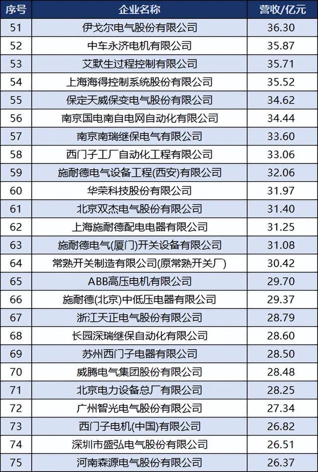 伊戈尔电气股份有限公司主营业务收入36.3亿元,排名第51位;